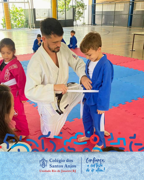 Neste sábado, 01/11, nossos alunos do Integral viveram um momento especial: a cerimônia de troca de faixas do Judô, conduzida pelo professor Rafael Constantino. A ocasião foi marcada por alegria, orgulho e emoção, reunindo alunos, famílias e equipe escolar em uma linda celebração das conquistas alcançadas ao longo do ano.