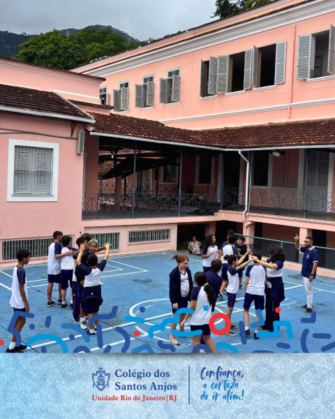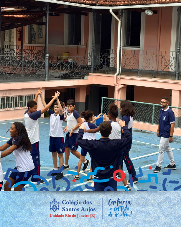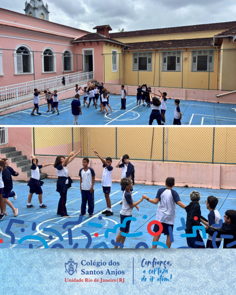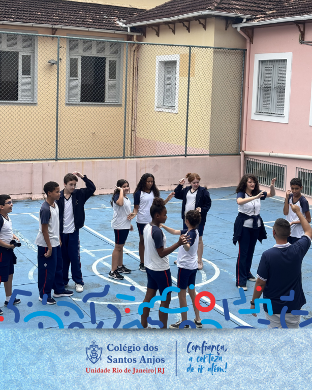 Durante a proposta, os estudantes precisaram interagir com rapidez, formar grupos e colaborar entre si para que todos conseguissem participar. A dinâmica também proporcionou momentos de cooperação, atenção e ajuda mútua entre os colegas.