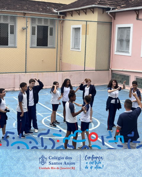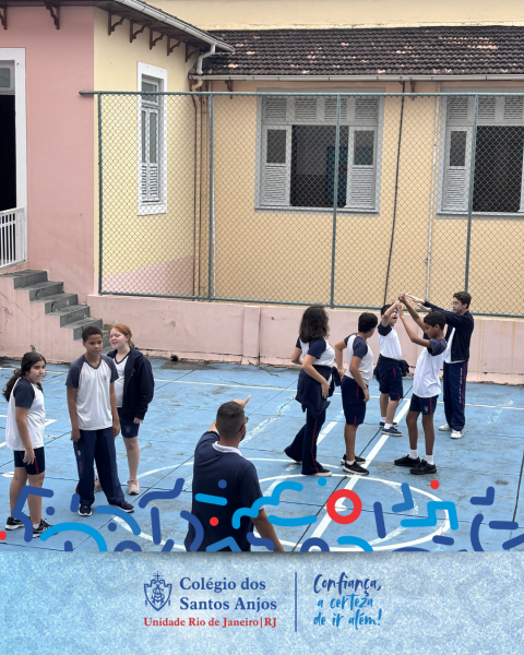 Durante a aula de Socioemocional, com o professor William Coutinho, os alunos participaram da dinâmica “Casa, Morador e Terremoto”, uma atividade que estimulou o trabalho em equipe e a motivação.