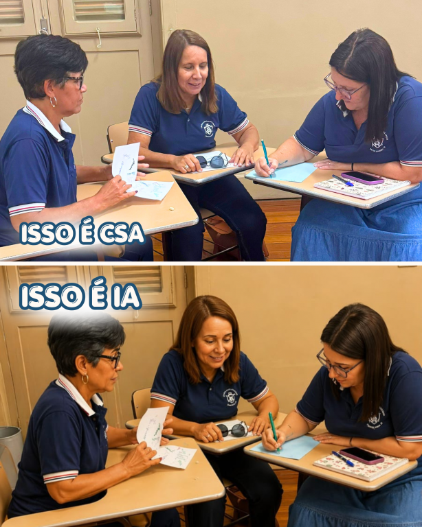 Hoje, propusemos um exercício de reflexão a partir dessa realidade. Como vocês puderam perceber, poucas, ou nenhuma, foram as alterações feitas nas imagens. Buscamos preservar aquilo que é essencial: o ser humano. Nossos alunos, professores, direção, Irmãs e pastoral continuam sendo o centro de tudo.